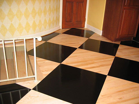 High Gloss Wood and Black Checkerboard Floor