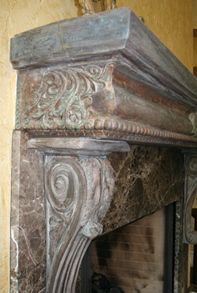 of new and old woods, as well as plaster three-dimensional repairs made to the relief carving.